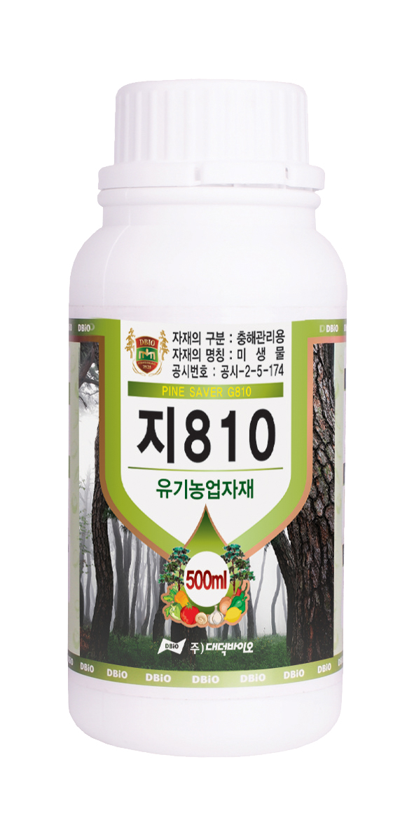 대덕바이오의 천적백신인 ‘G810’은 재선충을 잡아 먹는 곰팡이류로 ‘Esteya’라 명명되어 있다. 생물적 친환경 약제로서 토양에 잔류하지 않으며 인간과 동물에 해가 없다. 특히 천적백신은 매개충의 생태계를 교란하는 방식이 아닌 재선충을 직접 공격하는 재선충 포식성 곰팡이이다. 2018년 1월 친환경농업자재로 등록공시 되어있다.