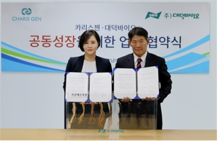 코스메틱 브랜드 카리스젠(CHARIS GEN)이 바이오 전문기업 충남대 대덕바이오와 협약식을 가졌다고 13일 밝혔다.